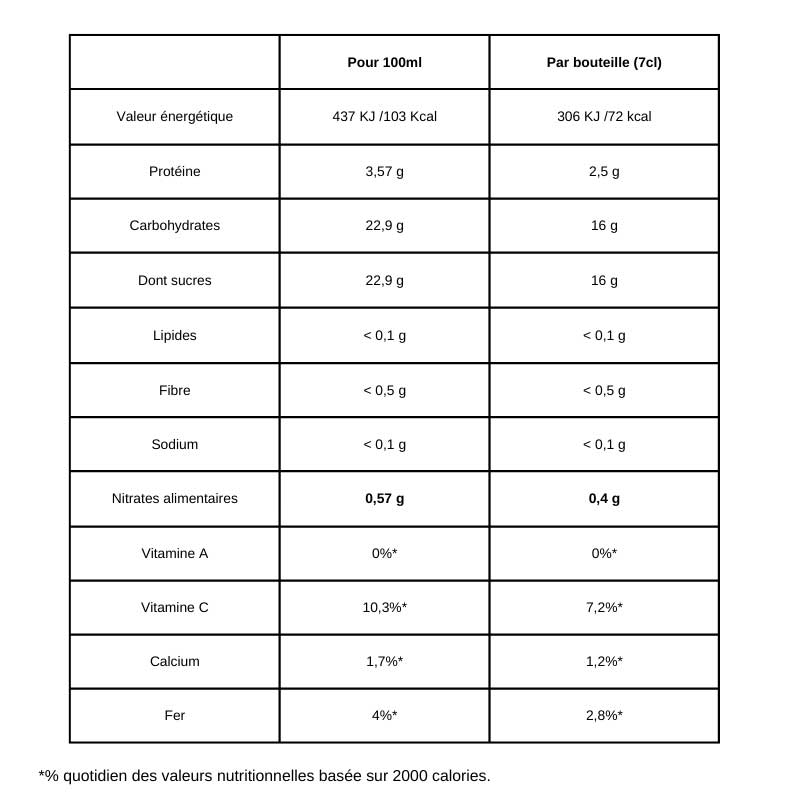 100% concentré de jus de betterave; sans conservateurs ajoutés